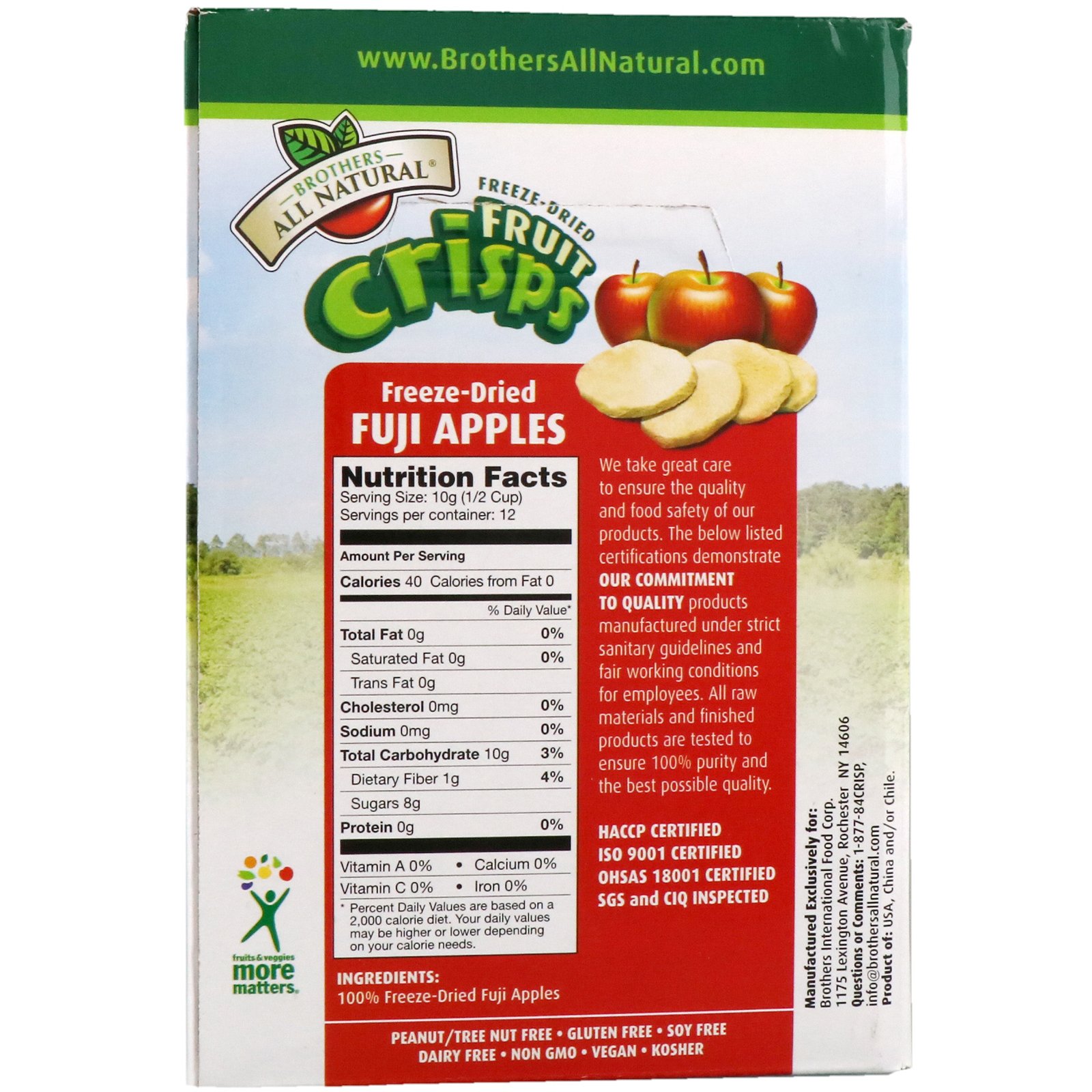 As frutas crocantes Brothers-All-Natural liofilizadas, especialmente as maçãs Fuji, vêm em 12 sacos individuais de 120 g, perfeitas para quem busca onde comprar snacks saudáveis no Brasil, oferecendo uma alternativa nutritiva e deliciosa que se torna uma opção prática e saborosa para crianças e adultos, perfeita para lanches, sobremesas e até mesmo em viagens, complementando uma dieta equilibrada com frutas desidratadas de baixo teor calórico, que garantem energia e mantêm a forma, tudo isso em embalagens práticas que proporcionam um estilo de vida saudável e ativo.