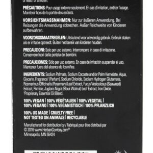 Herban Cowboy Crepúsculo Orgânico Aliciamento Moído Sabão contém pele condicionamento Alga, profundidade limpeza Pomes e desodorização Preto Nogueira em um orgânico vegetal óleo base com Herban Cowboy assinatura Crepúsculo perfume. Dusk Scent. Herban Cowboy Crepúsculo Orgânico Aliciamento Moído Bar Sabão é livre de corantes e áspero sintéticos. Impressão de tinta de soja em embalagens biodegradáveis e recicláveis. Organic, Sweatshop Free, Vegan, Cruelty Free, Embalagem reciclável.