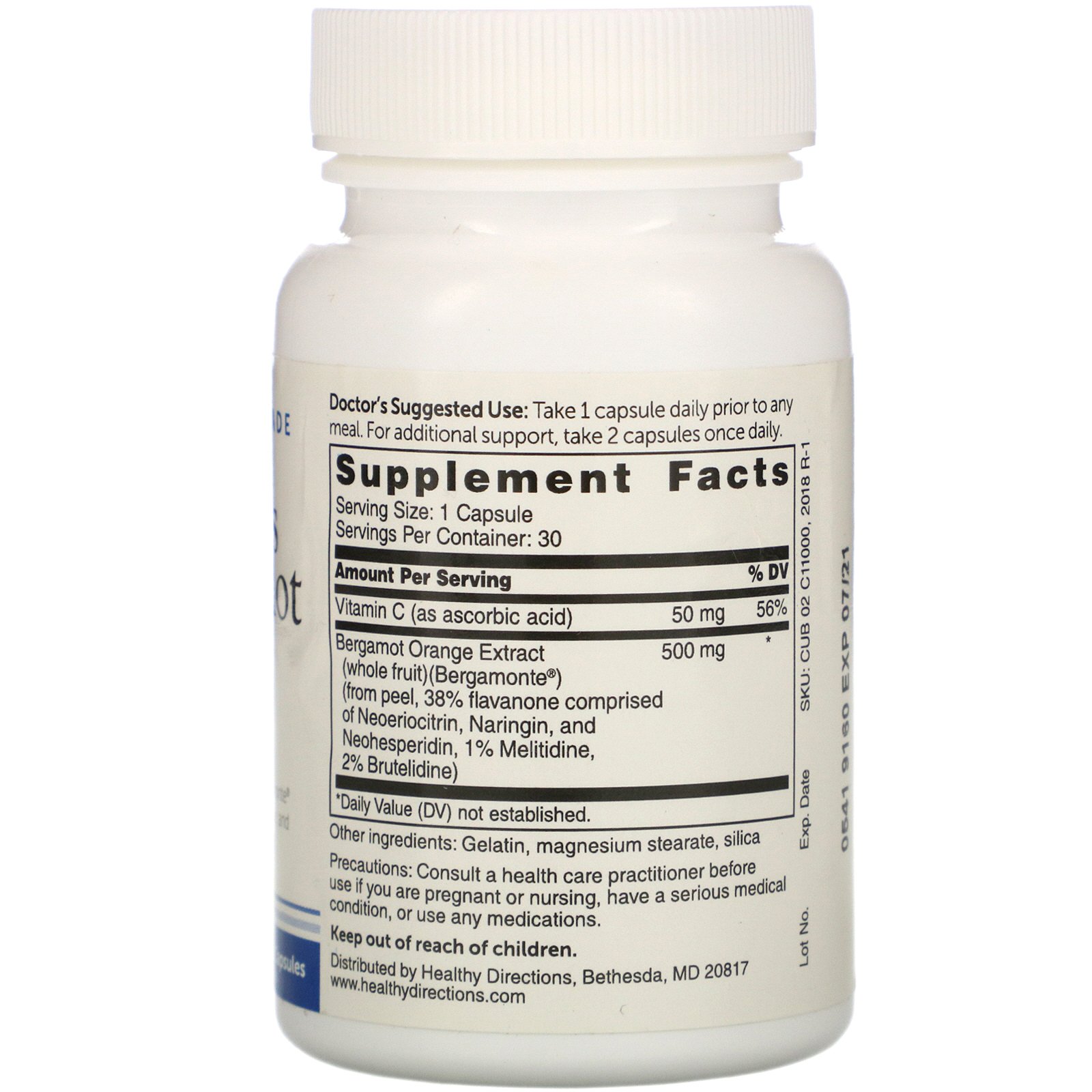 | Bergamot Orange Extract (whole fruit) (Bergamonte®) (from peel, 38% flavanone comprised of Neoeriocitrin, Naringin, and Neohesperidin, 1% Melitidine, 2% Brutelidine) |