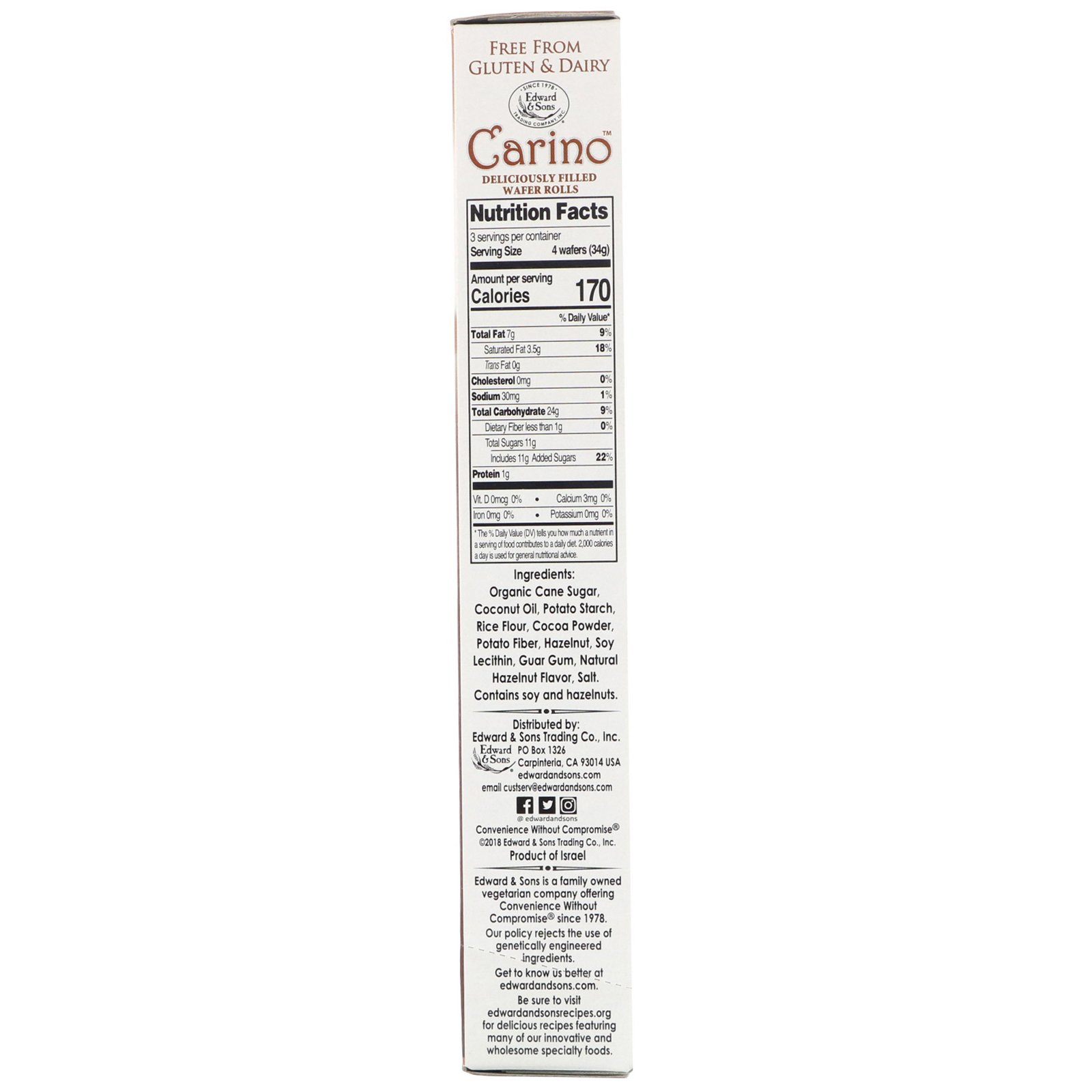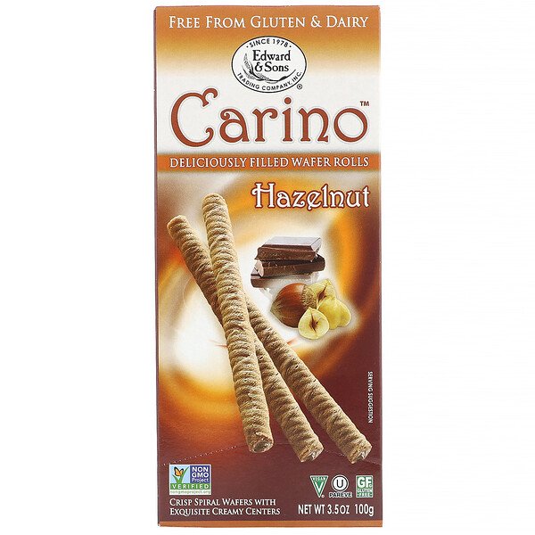 - Edward & Sons, Carino Rolinhos de Wafer Recheados, Cacau, 3,5 oz (100 g)