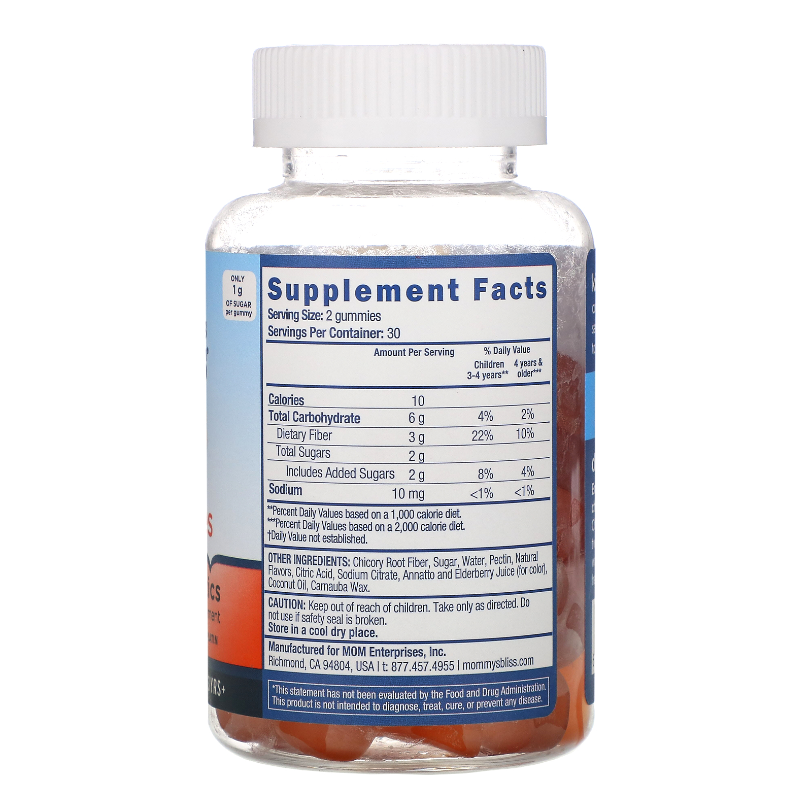 As Gomas Kids Fiber contêm 3 g de fibra prebiótica por dose e são uma forma saborosa de auxiliar a regularidade do seu filho.
