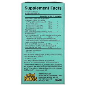 Natural Factors 3 Brains Higher Thoughts é um suplemento ideal para saúde cerebral que vem em cápsulas de 90 softgels, perfeito onde comprar no Brasil para quem busca memória, concentração e função cognitiva, oferecendo um suporte mental excepcional com ingredientes naturais que promovem clareza, foco e desempenho cognitivo, enquanto ajudam na aprendizagem e energização, equilibrando a saúde emocional e garantindo bem-estar, raciocínio rápido e criatividade; este suplemento contém antioxidantes em uma fórmula de fácil absorção que também contribui para a redução do estresse, agilidade do pensamento, recuperação neurológica e qualidade de vida, sendo indicado tanto para estudantes quanto profissionais e pessoas ativas que desejam aprimorar habilidades cognitivas, focando em quem precisa de apoio para aumentar a produtividade e eficácia no aprendizado, sempre com o objetivo de alcançar um cérebro saudável.