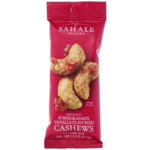 Sahale Snacks nozes caramelizadas com romã e baunilha em pacotes de 1.5 oz (42,5 g) cada são os snacks saudáveis ideais onde comprar no Brasil, oferecendo uma mistura deliciosa de nozes e cajus caramelizados que proporcionam um lanche saboroso e gourmet para festas, com baixo teor de açúcar e alta qualidade, sendo prontos para consumo e perfeitos para o dia a dia, especialmente para crianças e sobremesas; esses doces e salgados, além de serem um petisco saudável, também garantem energia para viagens e momentos de compartilhar, tornando-se o aperitivo perfeito em ocasiões especiais, com um mix de ingredientes naturais que trazem um sabor intenso e uma textura crocante, ideal para quem busca um snack caseiro e leve, irresistível e surpreendente, com um toque sofisticado que pode ser apreciado em piqueniques, além de ser balanceado e energético, prático e de qualidade, proporcionando um sabor diferenciado que encanta o paladar.