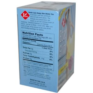 O Chá Dietético Uncle Lee’s Body Slim é composto por ervas e especiarias naturais de qualidade superior. A fórmula e a preparação são baseadas em um antigo livro chinês de medicina, "Descrições Detalhadas de Ervas Chinesas", de Lee Se-Zhen, 1518-1593. Depois de séculos de uso, o chá foi comprovado como uma das bebidas mais saudáveis para quem faz dietas.